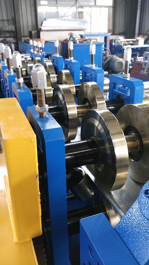 2.牌坊20道成型,主機(jī)由交流電機(jī),減速機(jī),牌坊,變速箱,水平調(diào)節(jié)系統(tǒng)和軋制模具。機(jī)座和傳輸采用焊接結(jié)構(gòu),具有硬度的處理,軋輥材質(zhì)為45#鋼。